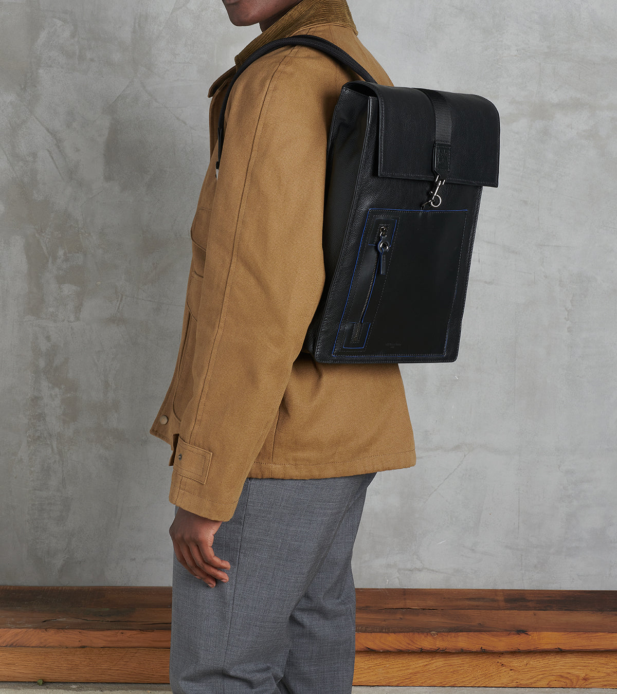 Du côté des sacs en cuir, la ligne Alexis se compose d’un modèle phare : le sac à dos à rabat en cuir, avec son fermoir central arborant le blason de la Maison, ainsi que d’une pochette bandoulière, d’un sac marin en cuir et d’un sac de voyage en cuir 24h. L’ensemble se voit complété de deux pièces de petite maroquinerie complétant parfaitement le reste des pièces : un porte-carte en cuir et un étui de téléphone en cuir. L’approche stylistique se retrouve jusque dans les fonctions mêmes des déclinaisons qui en profitent pour mêler différents montages et savoir-faire historiques de la Maison. Avec sa ligne Alexis, Le Tanneur réalise une démonstration de créativité mêlant modernité, savoir-faire technique et belles matières.