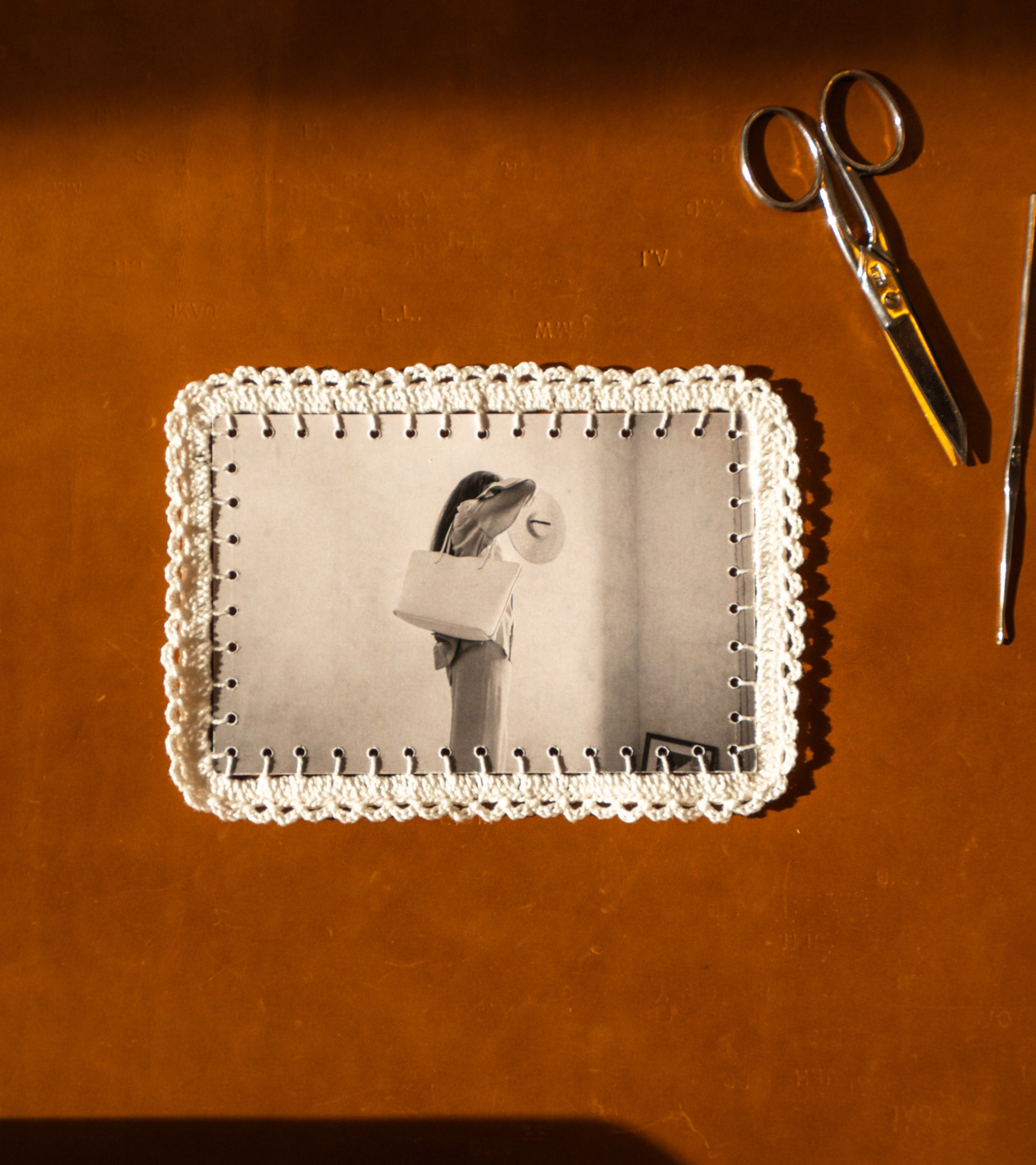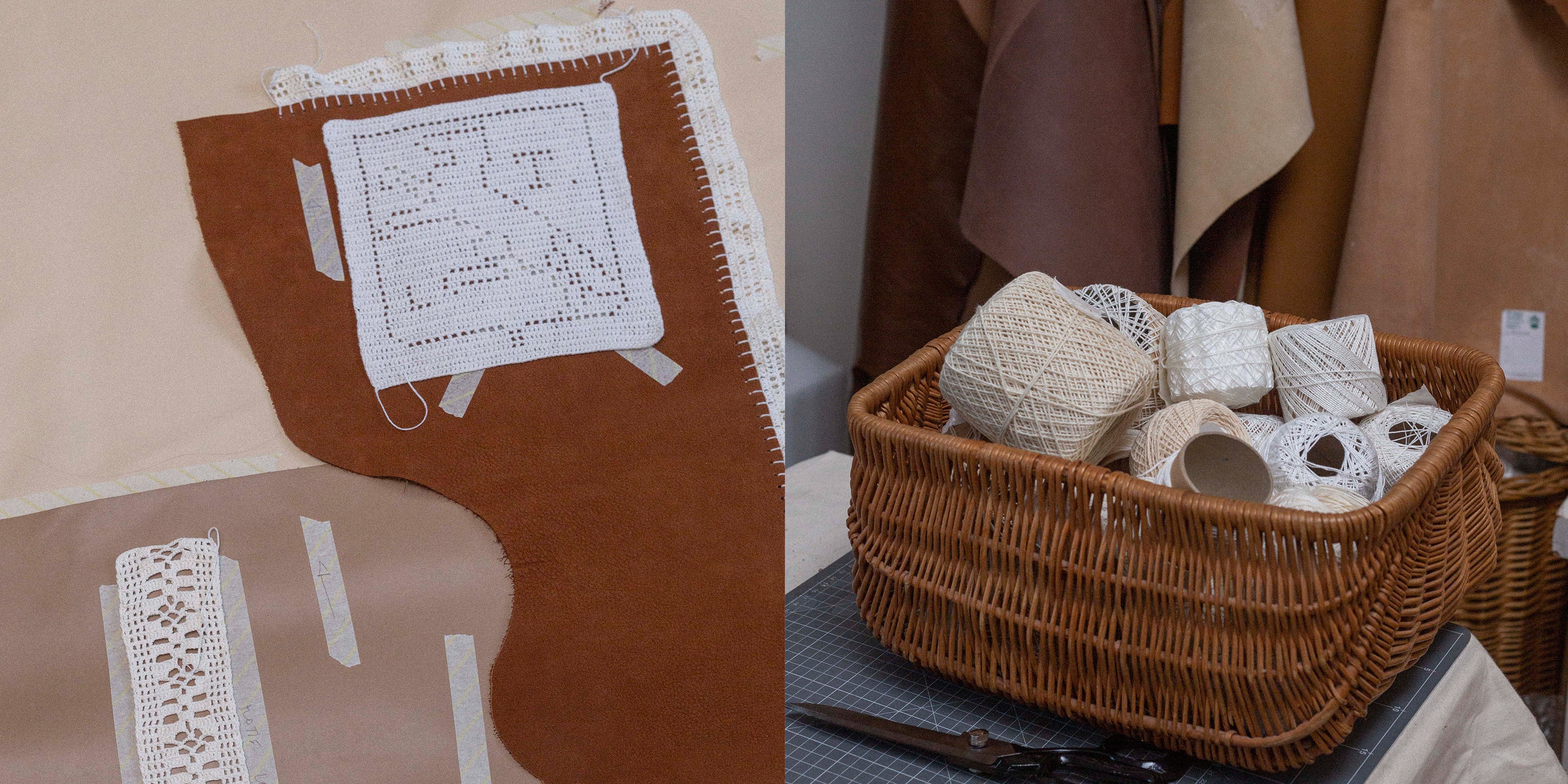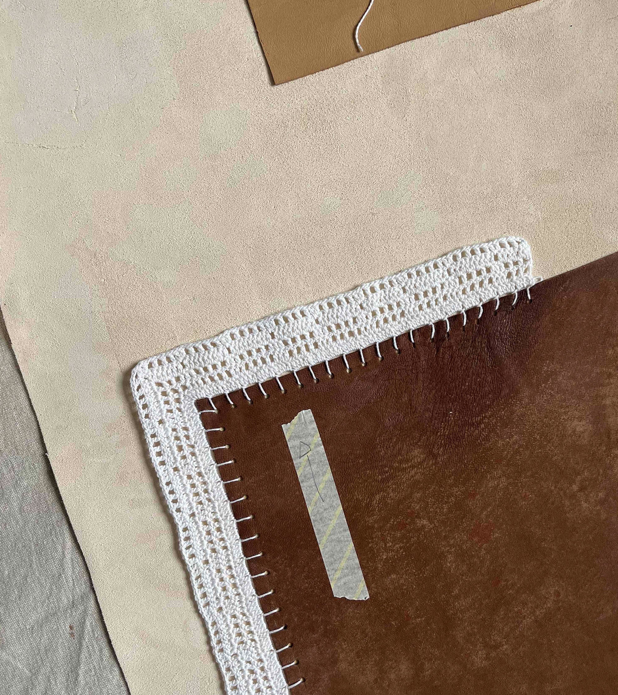 Hacer que se encuentren los saberes hacer. El algodón blanco es el material ideal para eso. Es el material icónico del crochet, y resulta que el cuero y el algodón funcionan perfectamente juntos.