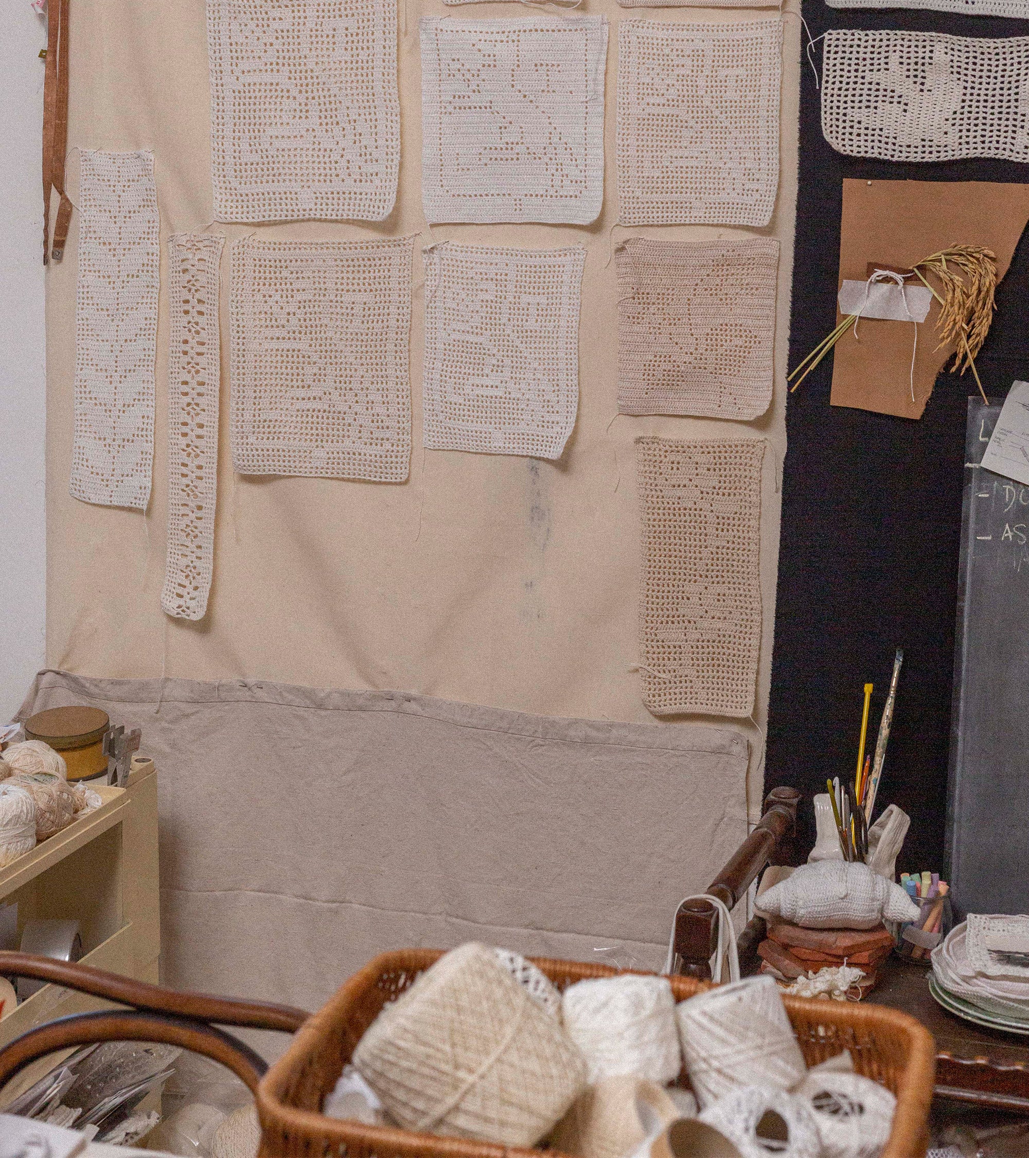 Es unatécnica bastante sencilla, que requiere poco material, pero que ofrece un campode posibilidades inmenso. Con pocos conocimientos, sabiendo hacer algunospuntos, ya puedes crear cosas complejas e infinitas. Lo que también me gusta esque es una artesanía doméstica antigua, que dice mucho sobre la casa, eltrabajo y el lugar de las mujeres. Tiene un toque de "abuela". Creoque es importante darle un giro, apropiármelo para modernizarlo. Crear nuevosobjetos.