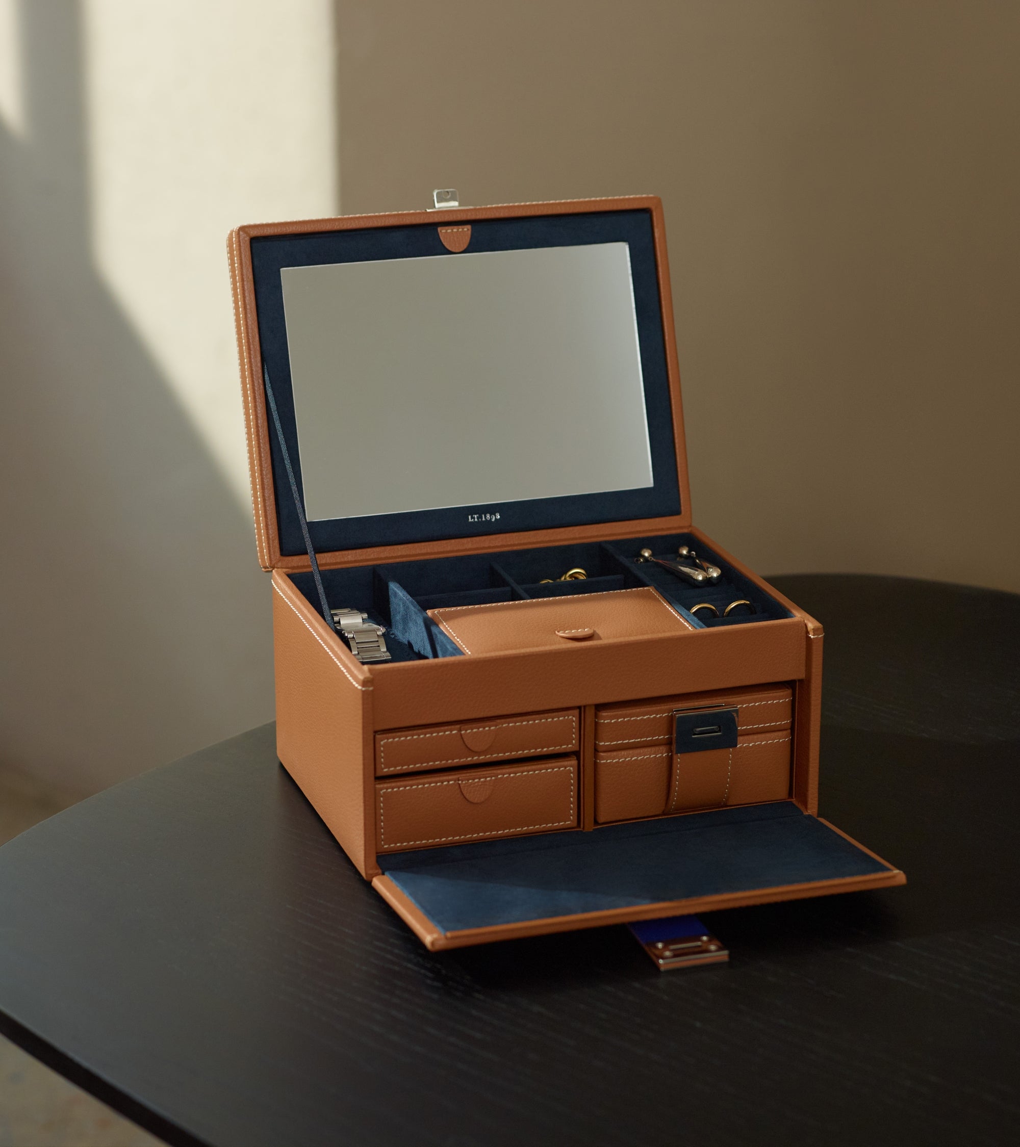 Las cajas de joyas y relojes de Le Tanneur están diseñadas para proteger y realzar sus posesiones más preciadas. Forradas con un interior de terciopelo, estas cajas de cuero están concebidas para albergar sus joyas y relojes con el mayor cuidado. Disponibles en varios formatos, combinan estética y funcionalidad, lo que las convierte en esenciales atemporales para quienes buscan organizar sus colecciones con estilo.