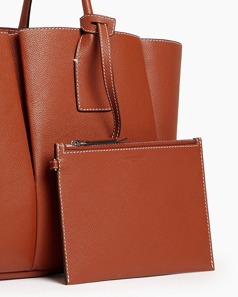 Fabriqué en cuir grainé, ce cabas en cuir offre résistance et souplesse tout en respectant les codes de la Maison et en reprenant les codes du cabas classique. Elena démontre l'expertise artisanale de la Maison et sa volonté de transmettre son savoir-faire dans des pièces modernes. Décliné en deux tailles : un petit avec bandoulière ajustable (qui offre au passage un porté croisé supplémentaire) et grand format classique. Ce sac cabas pour femme est doublé d'une élégante microfibre, ajoutant une touche de raffinement sur tout l'intérieur. Le sac cabas Elena est doté d’une pochette amovible à glisser à l’intérieur, et de nombreuses poches, y compris une poche pour rouge à lèvres et pour miroir de courtoisie. Autant de détails qui font de ce cabas un véritable sac en cuir à grand volume, idéal au quotidien.