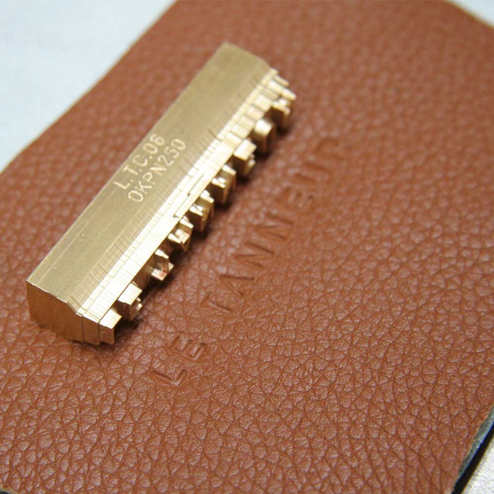A hot iron presses the elaborate motifs through the golden leaves, which allows to engrave either initials, or more sophisticated designs, which gives each leather piece a unique aspect.