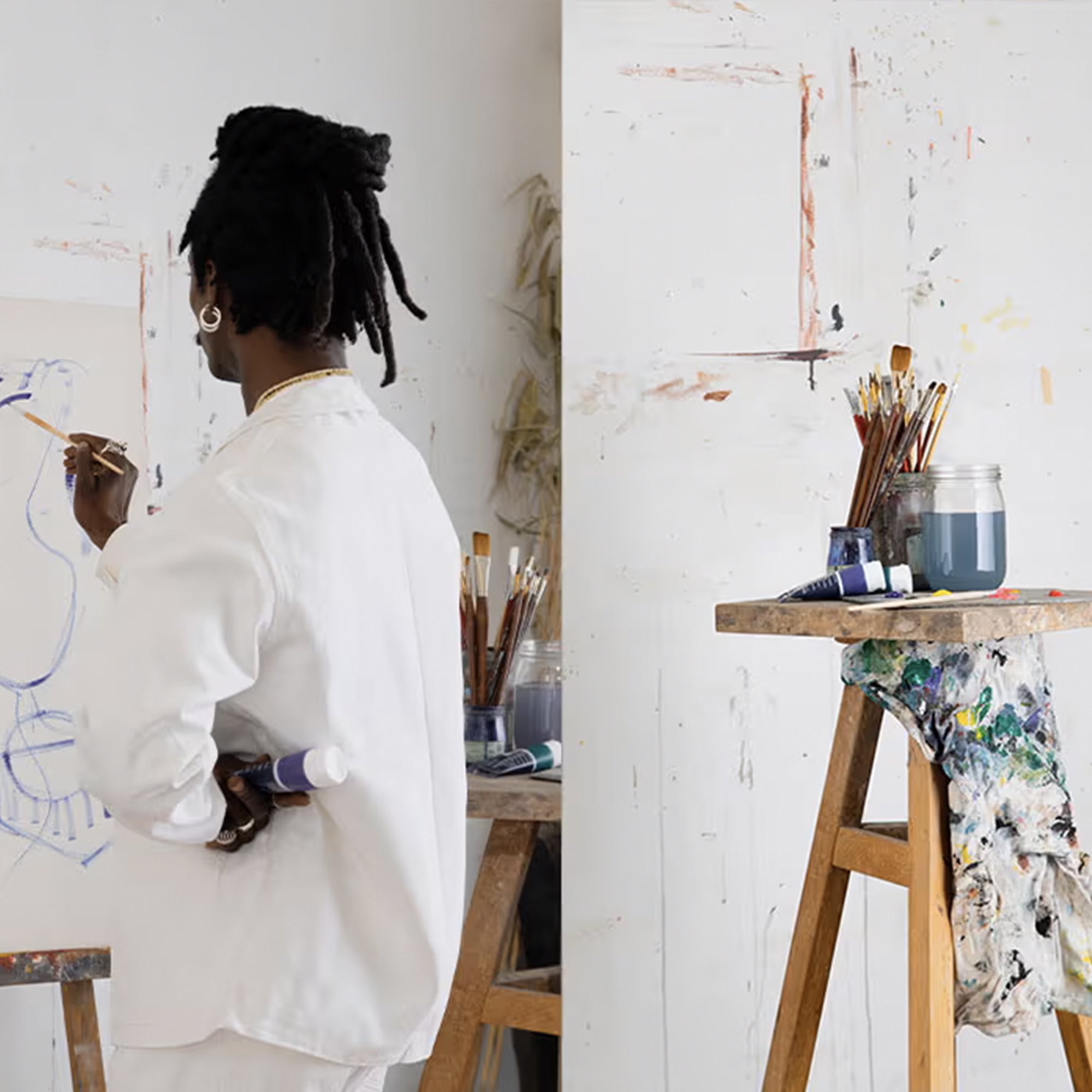 On the occasion of the release of the pieces developed alongside him, we took a few moments to chat with him. You will understand that this former dancer turned painter is one of the most inspired people you will have the chance to meet.