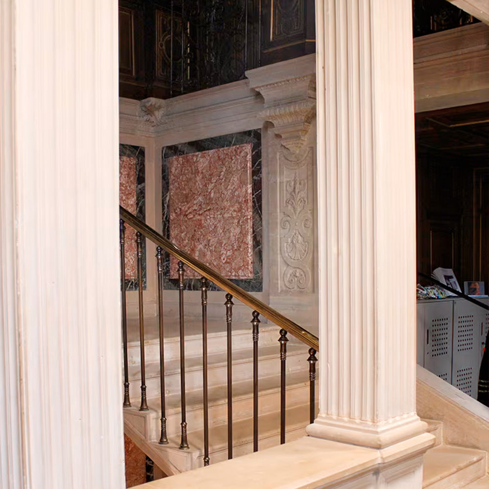 The details of the engravings, the surprising friezes that imitate the Tuscan art beloved by the Quattrocento, then lead us to the showroom of our Maison. Here, wide tables in amber and black tones, accompanied by gilding, seem to remind us that our Maison is devoted to conviviality; conviviality of minds and projects, from the artisans to the designers.