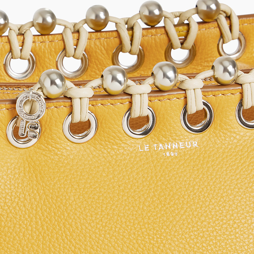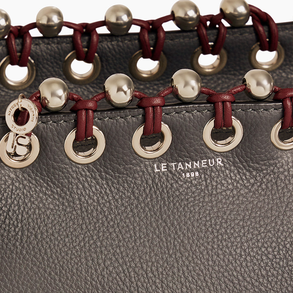 Llegué a la joyería desde el diseño textil. Por eso trabajo la joya de una forma diferente a un artesano joyero o a un diseñador especializado. Con Le Tanneur, la idea era crear un bolso-joya basado en el bolso Louise. Integramos cuentas metálicas en nuestro trenzado y colocamos ojales para lograr un efecto “joya”.