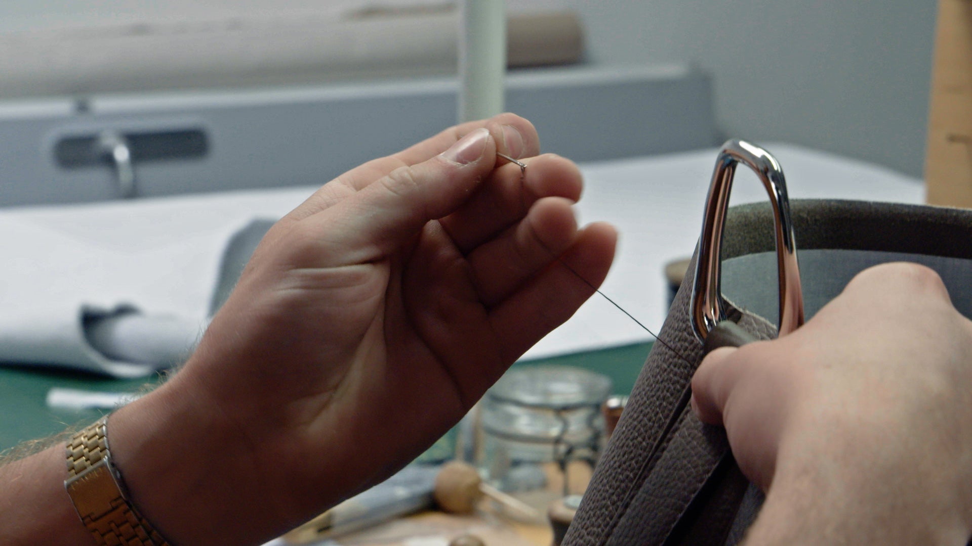Depende del modelo, pero a menudo somos muchos los que trabajamos en una pieza, especialmente en la etapa de producción. Cada persona se ocupa de una parte específica. Es un verdadero trabajo en equipo. En cuanto a mí, estoy especializado en el desarrollo del bolso, creando los modelos y prototipos. Luego entreno a los equipos de producción en el taller y permanezco disponible para ellos, por si me necesitan.