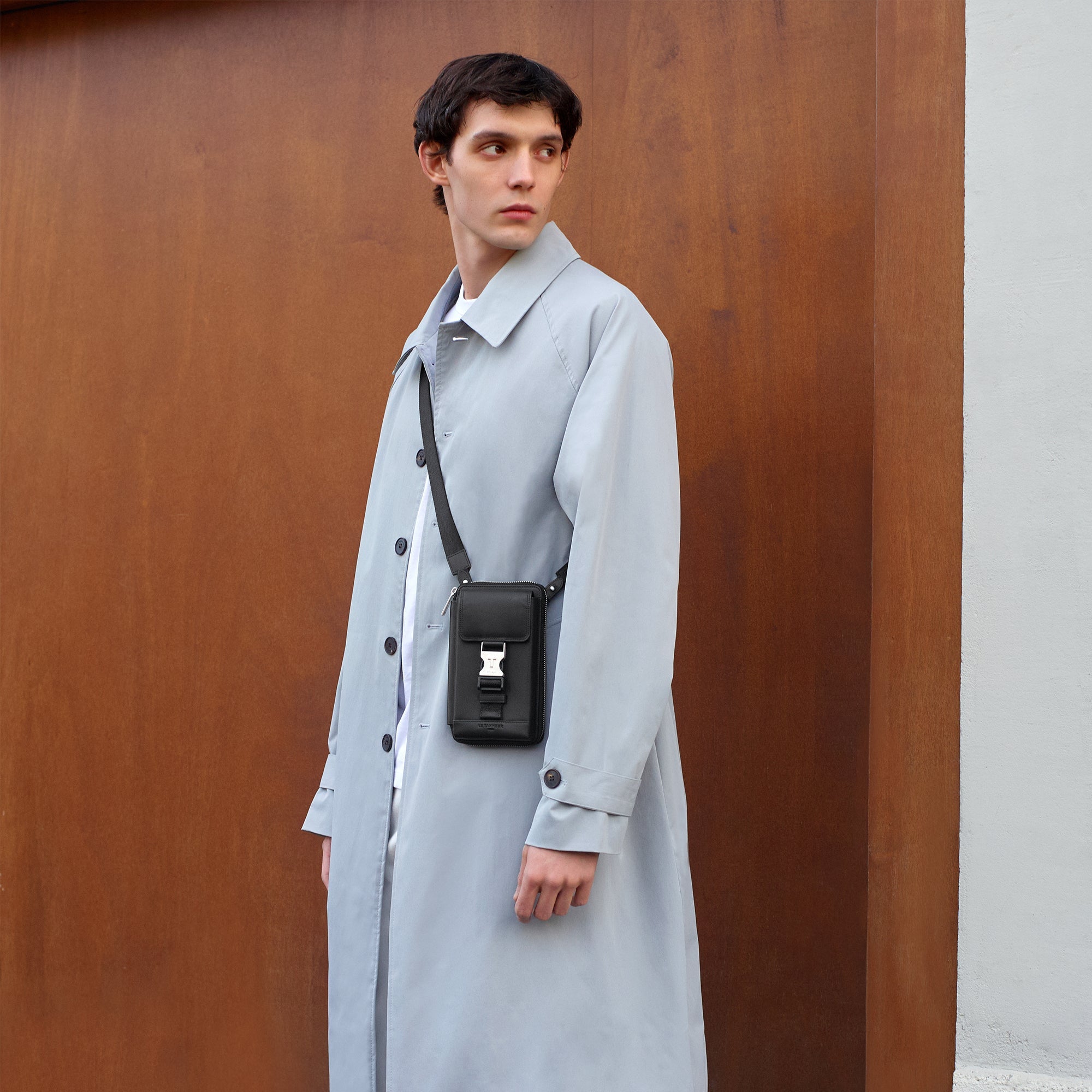 Al final, hay doce piezas de cuero con una fuerte identidad que mezclan cuero y lona recubierta, todas adornadas con un bolsillo con solapa y un cierre de tuc, la firma de esta línea práctica y contemporánea.
