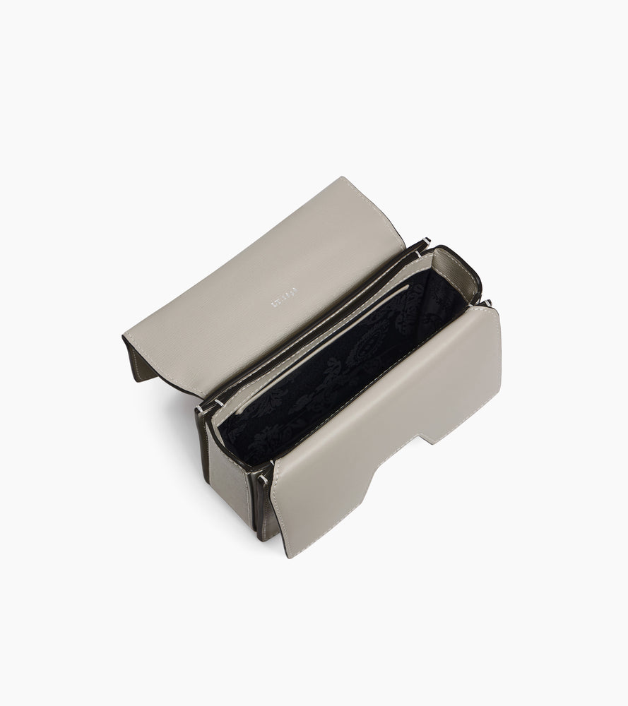 Además de su sutil mezcla de materiales, la línea Naya presenta numerosos detalles que reflejan los años de artesanía de la Casa. El corte gráfico de las esquinas, así como el doble cierre con hebilla grabada, o la correa para el hombro y su nuevo sistema de ajuste. ¿Nuestro detalle favorito? La loba de Le Tanneur grabada en los bucles de la correa, por donde pasa la correa para el hombro. Destaca la presencia del forro aniversario distintivo, en homenaje a nuestros 125 años de experiencia en marroquinería.