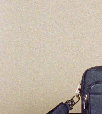 Bolsa para cámara fotográfica con piezas metálicas grabadas en acabado cañón de fusil y marca Le Tanneur del mismo tono. Forro 100% algodón color azul marino. Este modelo puede llevarse del hombro o cruzado gracias a su bandolera ajustable y extraíble.